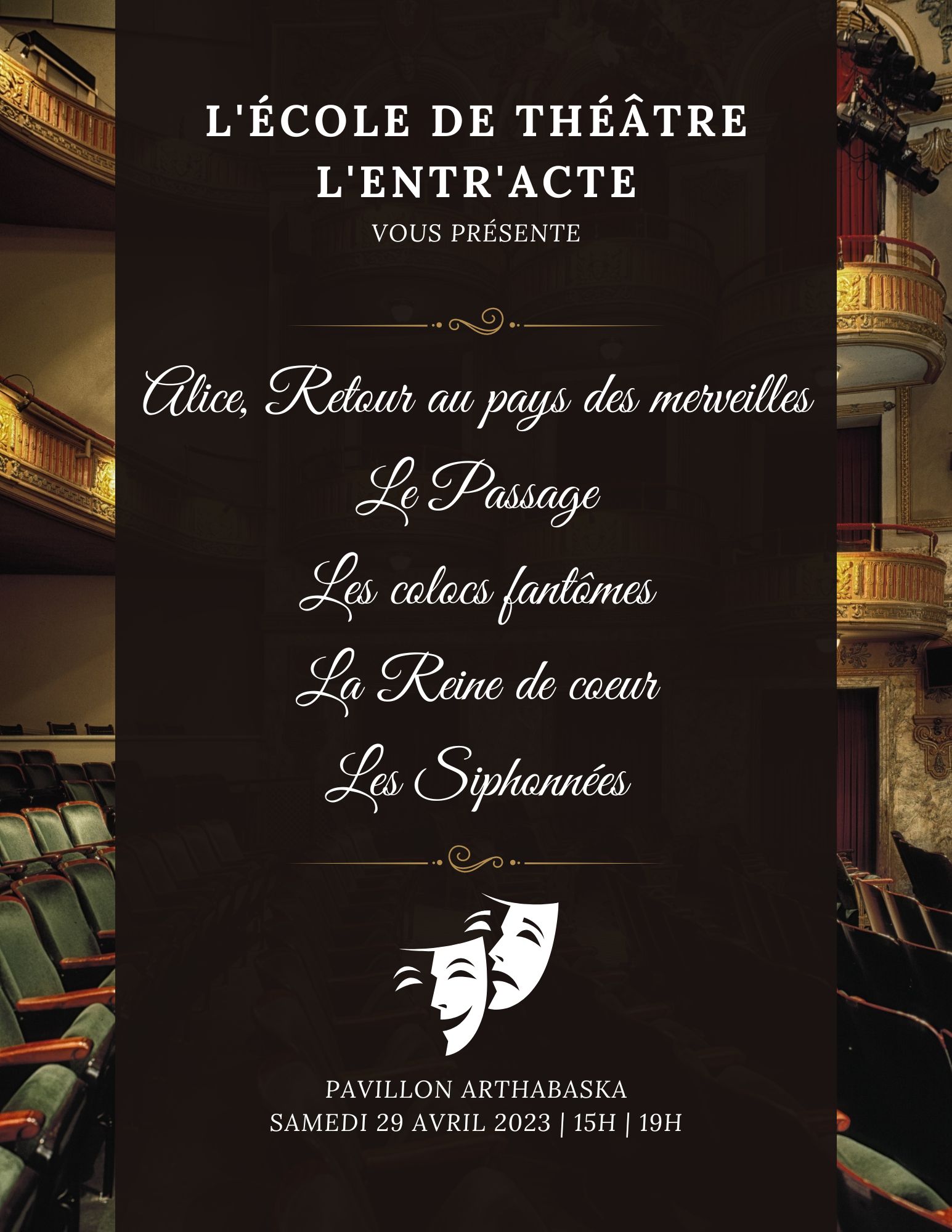 Nous vous invitons le 29 avril prochain à venir voir notre série spectacle de l'École de Théâtre L'Entr'Acte!